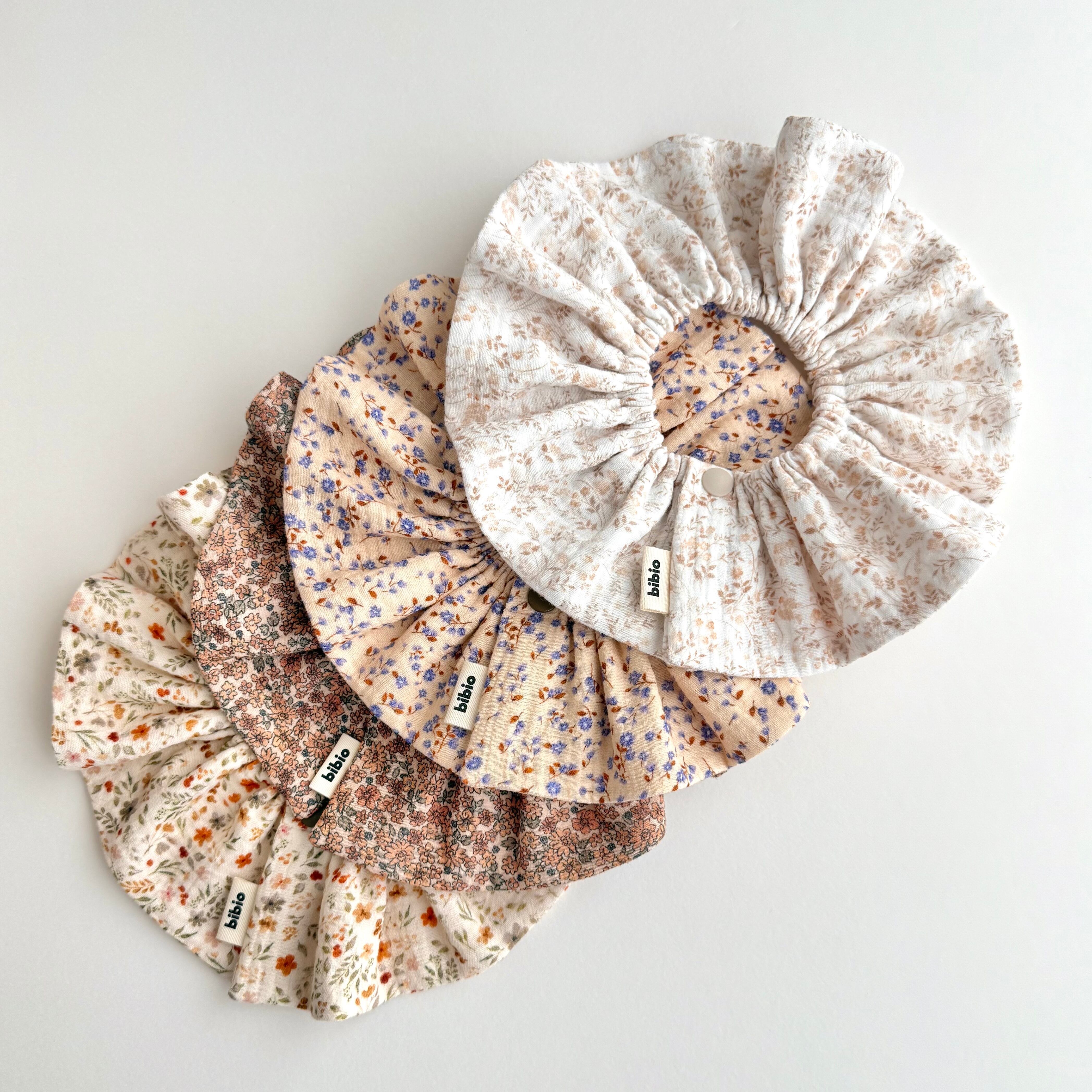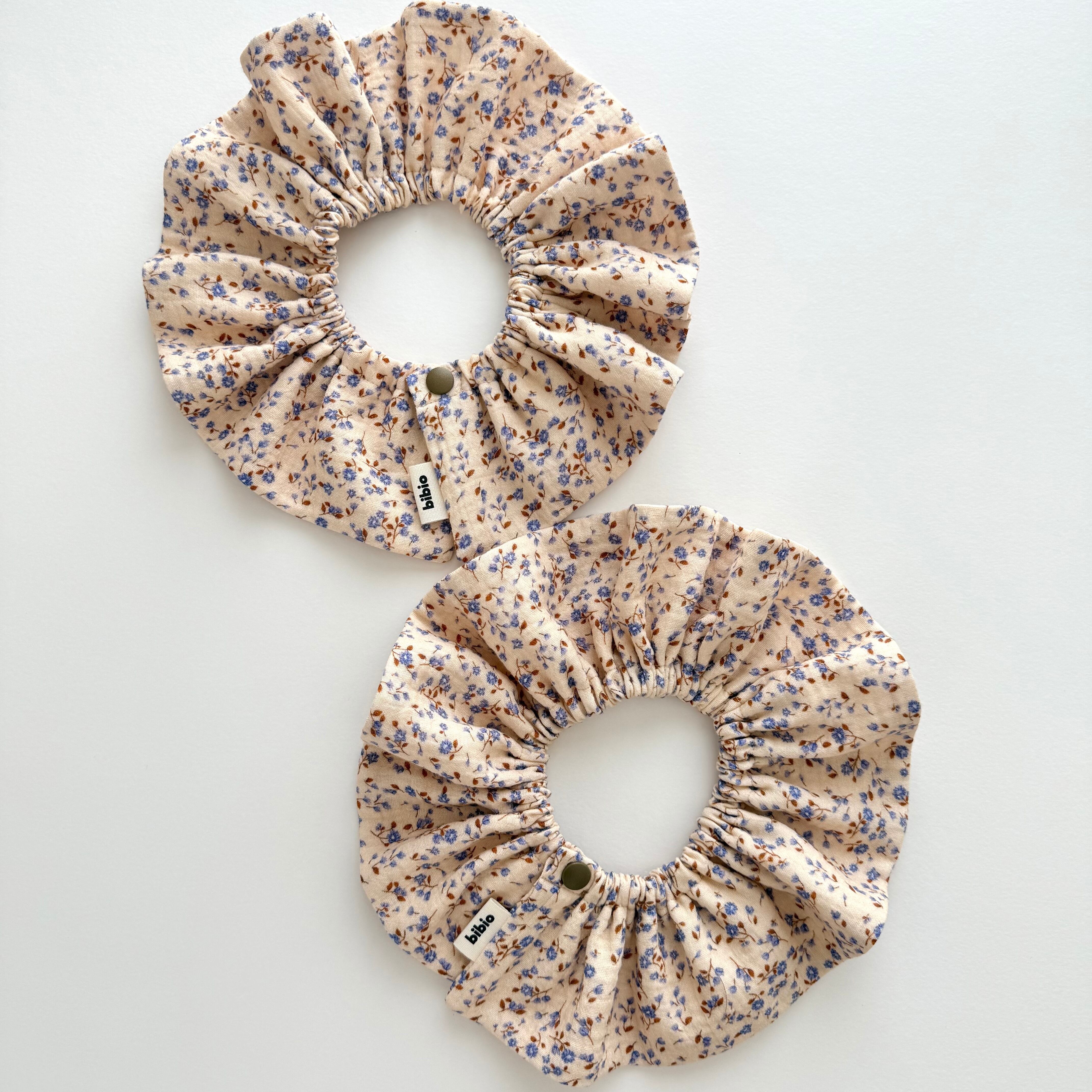 blue flower frill bib / スタイ